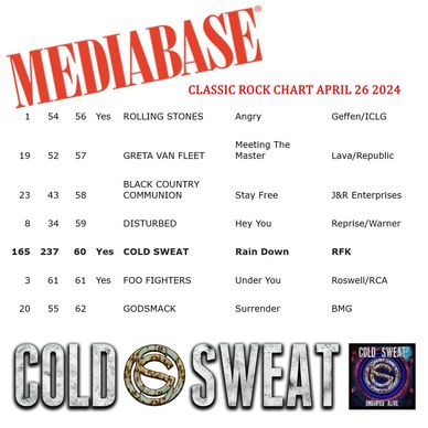 APRIL 2024 - "Rain Down," the first single from Cold Sweat's Unburied Alive" album, break's into the Top 60 on the Mediabase Classic Rock chart.