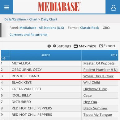 JULY 2022 - "When This Is Over," the power ballad from Ron Keel Band, hits the Top 5 on the Mediabase daily Classic Rock chart.